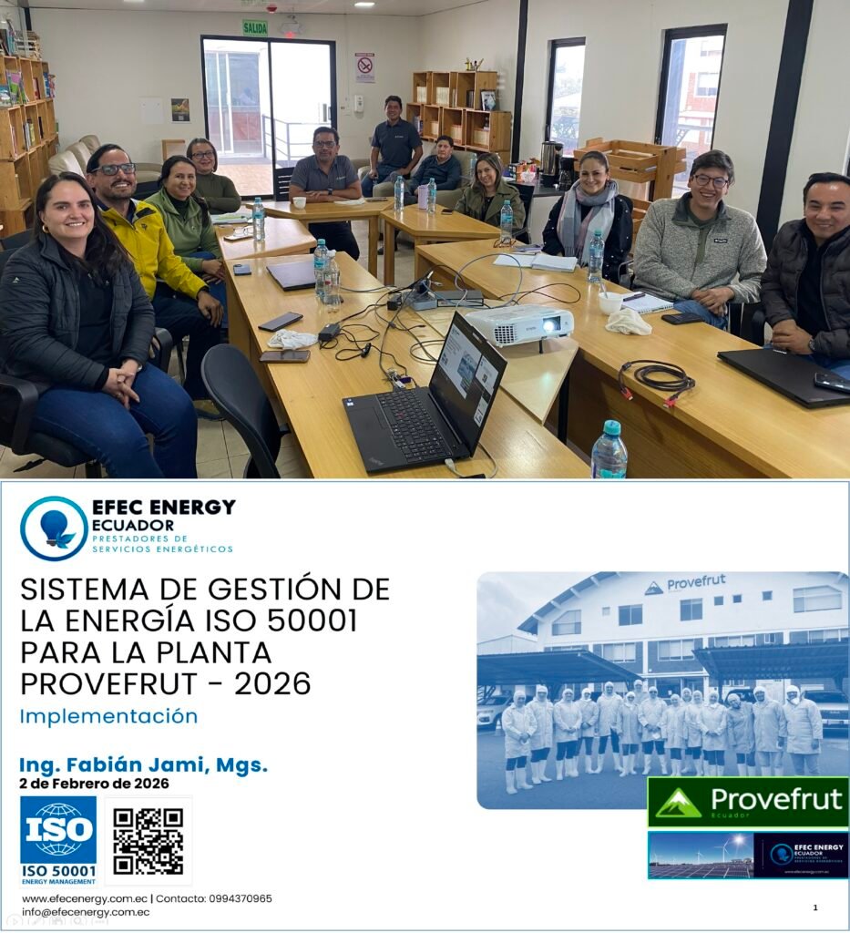 El 2 de Febrero de 2026 damos el inicio de la Implementación del “SISTEMA DE GESTIÓN DE LA ENERGÍA ISO 50001 PARA LA PLANTA PROVEFRUT“, empresa localizada en la provincia de Cotopaxi, siendo la principal procesadora y exportadora de vegetales congelados en Ecuador, enviando al exterior más de 360 contenedores mensuales en los mercados europeos, estadounidenses y asiáticos. El objetivo para desarrollar su Sistema de Gestión de Energía está alineado a su cultura de valores, donde predomina la responsabilidad social , el respeto al ambiente de manera sustentable, la innovación tecnológica y el uso eficiente de los recursos energéticos (Fuente: https://www.provefrut.com/es_ES/)